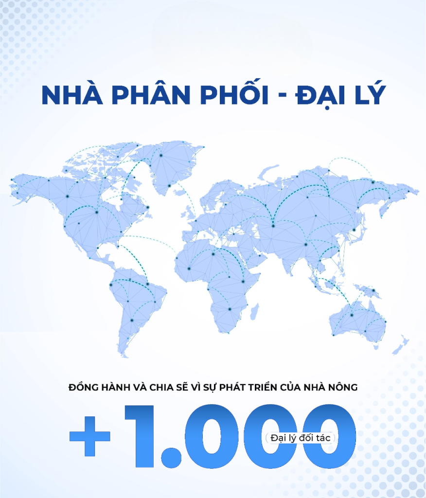 Với mạng lưới phân phối rộng khắp với hơn 1000+ đại lý đối tác, không thông qua đại lý cấp 1 mà trực tiếp qua các đại lý cấp 2, cấp 3 đảm bảo sản phẩm đến tay người nông dân nhanh chóng.